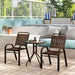 - Space-saving design: The chairs are stackable, making storage a breeze when not in use. Paired with an elegant, water-ripple tempered glass table, this garden table and chairs set seamlessly blending style and practicality.