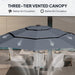 Enjoy a cool, breezy day under the Outsunny outdoor umbrella! Its three-tier vent design enhances airflow, ensuring stability and continuous comfort. Light up the night with built-in LED lights on each rib, solar-powered for twilight ambiance. The 180 gsm polyester canopy resists UV rays and splashes, making this optimal sun umbrella for garden or patio.