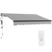 Enjoy the outdoors in style with the Outsunny electric awning! Effortlessly extend this garden awning canopy with a remote control or manually twist the hand crank. Crafted from rust-resistant aluminium and 280g/m² polyester that blocks harmful UV rays, this retractable awning lets you lounge comfortably, adjusting the tilt from 45° to 85° to cast your shade over your patio or window.