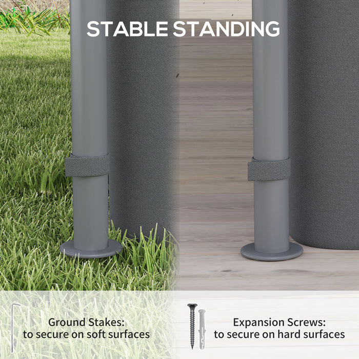 Transform your garden into a luminous haven with the Outsunny garden shelter. Its solar-powered LED lights, including a central beacon and 44 bulbs, ensure magical evenings under a starlit sky. The dual-roof design enhances airflow, while the splash-resistant polyester canopy with drainage holes keeps the rain at bay. Plus, removable curtains provide seclusion and shade, crafting the desired outdoor retreat.