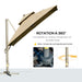 - 360° movement: Controlled by foot pedal, moves the garden umbrella parasol canopy to whatever position you want - keeps you shaded from morning through to evening.