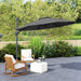 - Overhanging design, two-tier fabric canopy: Stand this cantilever parasol to the side of your garden seating and dining sets - won't get in the way. Top tier allows air to pass through gently - help avoid canopy turning inside out.