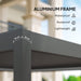 - Weather-resistant frame: Aluminium roof holds up against 50 kg/㎡ of snow and resists water and UV rays. 10 cm aluminium columns for rust resistance, securely standing up to 102 km/h wind speeds with expansion screws secured.