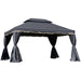 - Two-tier canopy: PA coated fabric of the aluminium gazebo protects you underneath from direct sunlight and light showers. The top vent helps regulate air flow.