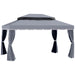 - Aluminium frame: Powder coated, this is a strong structure which will stand steady. Eight ground pegs are included to secure the permanent gazebo to the ground.