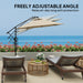 Stay cool and stylish with the Outsunny cantilever parasol! Built for durability and elegance, its UPF50+ fabric shields you from harmful UV rays, while 2 wind ropes ensure stability on breezy days. The included protective cover keeps your umbrella looking fresh all year round. This garden parasol with base included suits for patios, decks, or poolside escapes, it's your go-to for shade and relaxation in any season.