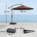 - Overhanging parasol information: Overall Dimension: Φ294 x 251H cm. Base weighs 90kg with sand, 70kg with water. Assembly required. Note: Do not use umbrella during extreme weather (strong wind, heavy rain, snow)
