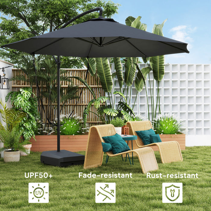 - Effortless operation: Rotate and tilt the cantilever parasol with base included for all-day sun protection, keeping your space cool, while the easy-to-use crank handle lets you open and close it in under a minute for hassle-free convenience