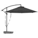 - Overhanging parasol information: Overall Dimension: Φ294 x 251H cm. Base weighs 90kg with sand, 70kg with water. Assembly required. Note: Do not use umbrella during extreme weather (strong wind, heavy rain, snow)