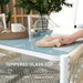 - Tempered glass tabletop provides safe surface while easy to wipe clean