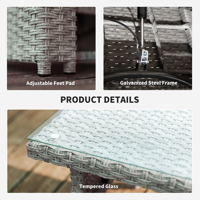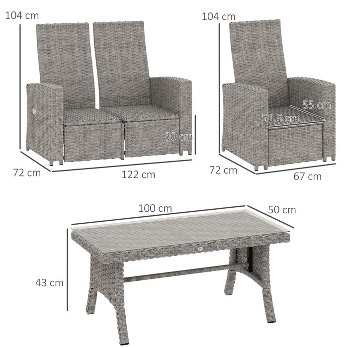 An inviting outdoors, this season and beyond: say hello to this Outsunny rattan furniture set. All pieces have a galvanised steel frame for a strong core, wrapped in plastic wicker for double the durability-and style, of course. The two armchairs have 90°-135° reclining backs-extra relaxing points scored! Seat and back cushions for comfort. Complete with a glass-top coffee table.