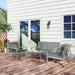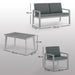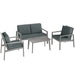 - Four-piece outdoor furniture set: includes a loveseat, two armchairs and a coffee table