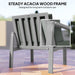 - Solid wood frame: Crafted from 100% acacia wood with a sleek varnish finish, this outdoor garden furniture set ensures long-lasting use. Each seat is designed to support up to 160 kg