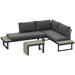 Transform your garden into a haven of relaxation with the outdoor corner sofa set from Outsunny. This versatile modular garden furniture includes two loveseats and a functional coffee table, crafted from UV and water-resistant fibre cloth for year-round enjoyment. Sink into the cosy, thickly padded cushions and enjoy convenience at your fingertips with built-in side tables. Our Outsunny L shaped garden furniture is great for any outdoor setting, from lawns to balconies