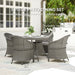 - Steel wrapped in stylish wicker: Powder coated frame for strong support, these outdoor table and chairs are wrapped in grey plastic wicker. Double be structure, double the strength. Keep protected with a cover for extended use.
