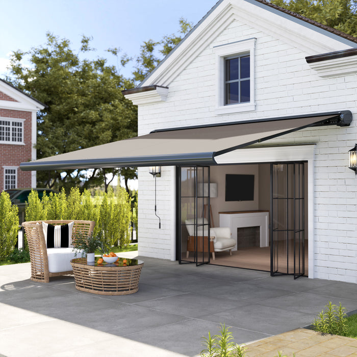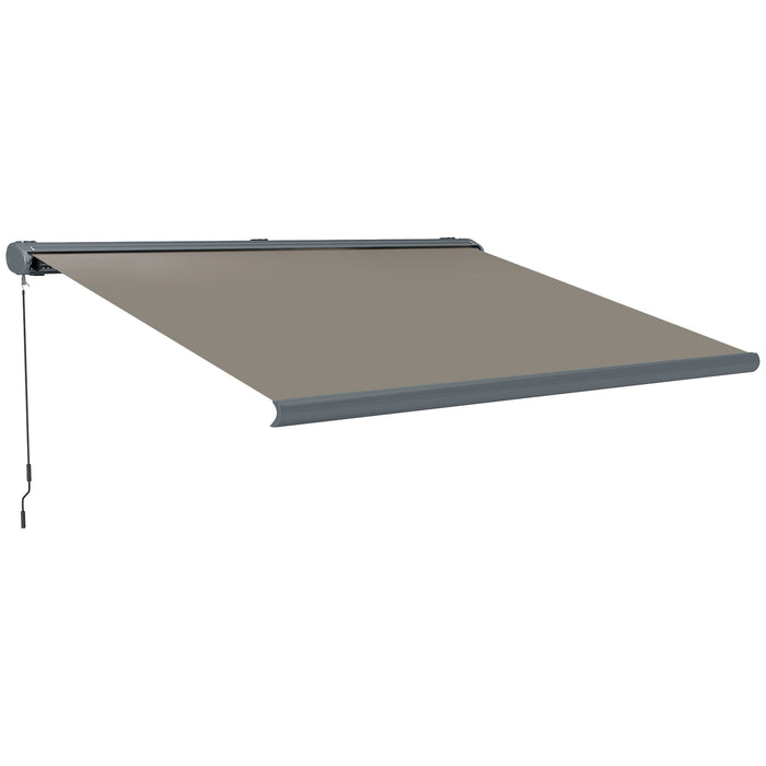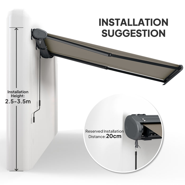 Discover the ease of shade with the Outsunny retractable awning. Control sunlight with a touch of a remote or a simple turn of the hand crank. Its fully closed cassette design keeps the elements out. Enjoy UPF 50+ protection under a robust awning canopy, great for any garden or window setup. Can be mounted on concrete or solid brick walls. The wall needs to be 2.5-3.5m high to fit the awning. Leave 20cm clearance when mounting above door or window.