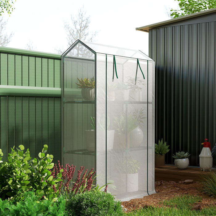- Inner three shelves: Generous space inside this plastic greenhouse. Wire shelves to hold and organise flower pots, seed trays and more.