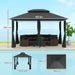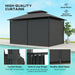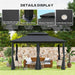 Find your outdoor party protected no matter what - go for this Outsunny hot tub gazebo with sides. This garden gazebo stands firmly in place, thanks to the steel structure with included ground stakes. The two-tier roof allows air to enter inside, whilst keeping rain and wind out. UV-resistant polyester curtains keep you protected and create privacy when required, securely fixed to the frame with hook and loop straps. It's time to take your outdoor parties up a notch with this permanent gazebo.