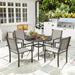 - Five-piece outdoor garden furniture set accommodates family meals and gatherings