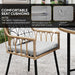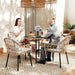 - Robust yet beauty: It boasts a tempered glass top with a sophisticated stone effect, while the chairs are beautifully crafted from hand-woven rattan. This combination blends modern elegance with material strength, ensuring both style and durability.