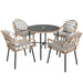 - Timeless elegance: Embrace the charm of a garden with our rattan 5-piece set. Designed with gracefully curved lines and an earthy palette, this outdoor dining set complements any outdoor space while featuring a parasol hole for added modern functionality.