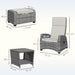 Rest and relax with company, with this Outsunny conservatory furniture. Five pieces - two reclining chairs, two footstools and a matching coffee table so you can relax with company. The two chairs have 130° reclining backs, with padded cushions for comfort. Each piece has a powder coated steel frame for a strong core, wrapped in plastic wicker for extra durability and style. Complete with adjustable feet for balance.