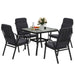 - Five-piece garden dining set for 4: Comes with four cushioned chairs and matching dining table. Seats four - relax and unwind with company.