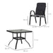 Enjoy your socialising time outdoors comfortably - look to this garden table and chairs set from Outsunny. Comes with four padded armchairs and a tempered glass-top table. Steel frames make each piece strong. High backs and armrests on the chairs for support, with a padded seat for comfort. The table is fitted with a tempered glass tabletop - comes with a middle hole to hold a parasol umbrella in place (Φ38 mm sized pole).