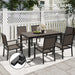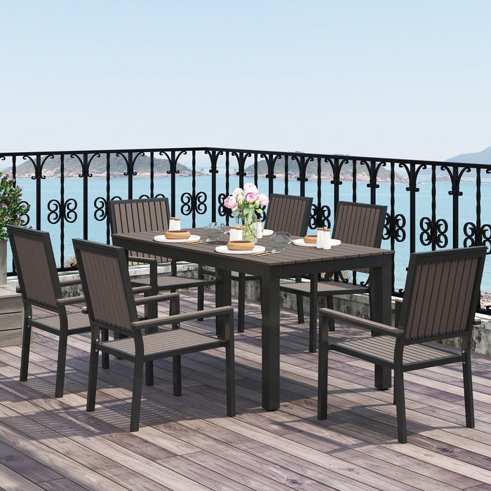 - Outdoor dining set includes six chairs and a matching table