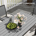 - Wood-plastic composite tabletop: This weather-resistant tabletop is UV-protected, resisting warping, cracking and fading. It's easy to clean, requires minimal maintenance and features a beautiful wood grain that combines both style and durability