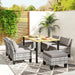 - Comfortable: This outdoor table and chairs set features thick 12 cm back and seat cushions for superior comfort. The cushions are secured with horn toggle buttons, removable and washable for effortless upkeep, ensuring prolonged comfort.