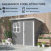 - Weather-resistant: Constructed from galvanised steel, this outdoor shed withstands the elements without blistering, cracking, or warping. Equipped with a foundation kit (not including floor) to keep the inner clean and sealed.