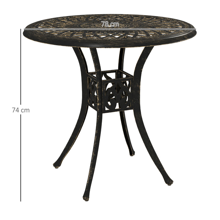A handy holding spot, which also brings style into your garden and outdoor areas: this round bistro table from Outsunny. Cast aluminium is tough, with a powder coating for extra strength and protection. It's crafted into cut-out design for something a little bit different-great for those who like to make an impression. A middle hold is for holding a parasol umbrella to keep you shaded. To complete, pair with bistro chairs, so everyone can gather round.