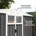- Built to last: Made of painted galvanised steel, this outdoor shed is engineered to resist UV rays, rust and water. Reinforced with internal support frames, it's designed for stability and durability in any weather.