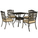 You centre spot for weekend brunches, evening dinners and more outside with this Outsunny outdoor dining table and chairs set. Comes with a square table and four matching chairs, each made from powder coated cast aluminium. The patio table and chairs with floral and grid cut-out patterns add beautiful visuals, with seat cushions included for comfort. Complete with a Φ55mm middle hole in the table to securely hold a parasol umbrella for safe shade as you relax on the balcony furniture set.