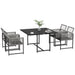 - Outdoor dining set includes four chairs and a matching table