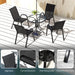 - Five-piece outdoor furniture set: Includes four stackable chairs and a round table with a tempered glass top. Sit and enjoy meals, drinks and relaxation outdoors with family or friends.