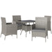 - Five-piece dining set includes four chairs and a tall table