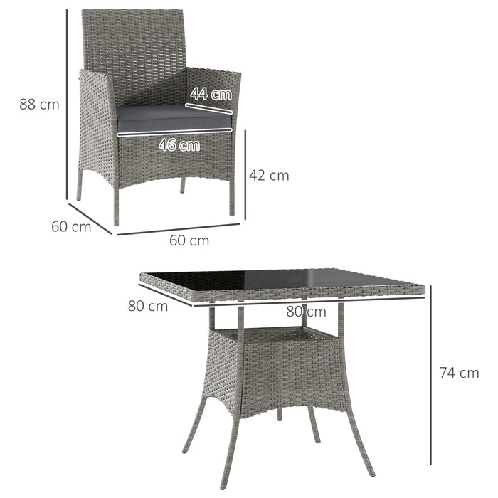 This Outsunny five-piece garden table and chairs are here so you can relax with company. Powder coated steel frames are strong and supportive. Cushions add comfort. The tempered glass tabletop is sleek. This rattan garden furniture set comes with four chairs and a matching table.