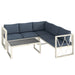 - Versatile four-piece garden sofa set: Include two loveseats, a corner chair and a coffee table. Whether you want a roomy five-seater L-shaped sofa or prefer a loveseat alongside a lounge chair, this outdoor furniture set easily adapts to your needs