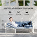 - Adjustable comfort: The corner chair boasts a five-level adjustable seat, paired with a loveseat, effortlessly transitioning to a relaxing reclining lounger. Customise your comfort and find your spot to enjoy the outdoors