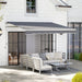 With a sturdy aluminium and steel blend frame, this Outsunny sun canopy awning is ideal for creating shade when needed. The thick 280gsm polyester canopy will protect you from any excessive heat and sunlight to keep you cool and comfortable. It can be easily mounted on the wall with the included accessories. The garden canopy retractable operation means you can open and close it whenever - a fuss-free way to extend your time in the Summer safely and comfortably.