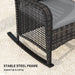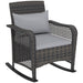 Relax and rock away in the Outsunny Rattan Rocking Chair, great for any indoor or outdoor retreat, from your living room to the courtyard. This wicker chair combines a soothing, gentle rock with a UV-resistant PE wicker seat and backrest, ensuring lasting comfort and ease of maintenance. The extra-wide, curved armrests enhance your relaxation moments, making it a must-have garden rocking chair.