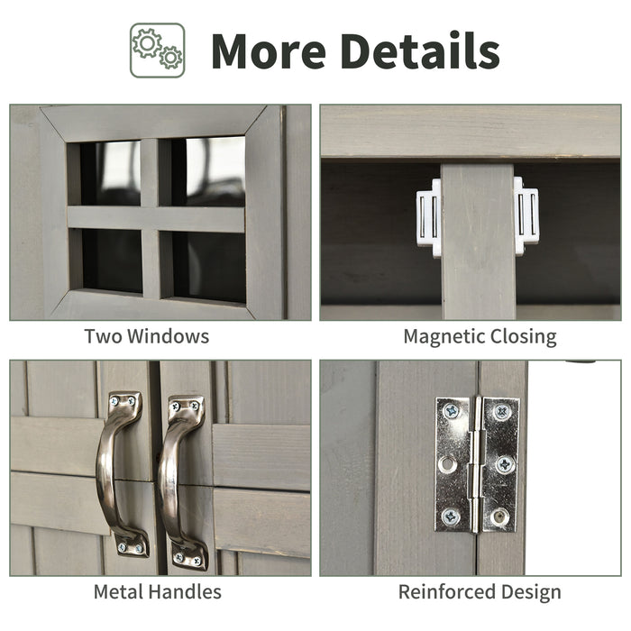 Gone are the days of fiddling with stubborn storage doors. Our garden shed features smooth magnetic closures that seal your items securely inside. The addition of two acrylic windows not only allows natural light to filter in but also provides a quick visual inventory without having to open the shed, saving you time and effort.