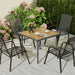 - Robust frame: Constructed with a steel frame featuring a powder-coated finish, this metal garden table promises enhanced longevity and rust resistance.