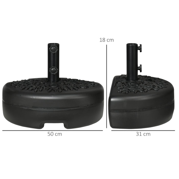 Incorporate elegance into your garden furniture with this half parasol umbrella base from Outsunny. It is engraved with a beautiful pattern that will go great in your garden or in your patio area. Just combine your umbrella with a table and chairs to create a relaxing oasis. It holds your umbrella securely and evenly in place, so the umbrella can provide much-needed shade. Enjoy your days under an umbrella with this beautiful umbrella stand.