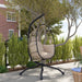 - Egg-shaped swing chair mimics a bird nest, wide seating