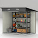 - Corrugated metal structure: Strong formation, shed stands steady and safely houses the inner items. Sloped roof to prevent rainwater build-up.
