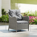 - Padded seat and back cushions: Sit and relax comfortably on this rattan garden chair set with soft cushions. Seat cushion covers with zips are removable and washable for hygiene.
