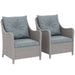 Sink into plenty of comfort outdoors with this Outsunny rattan armchair set. A steel frame with powder coating means a strong core, wrapped in tough plastic rattan for a protective outer. Soft padding seat cushions and tufted back cushions ensure comfort, with removable and washable seat cushion covers for hygiene. Each outdoor armchair is complete with curved armrests and high backs for extra relaxation.